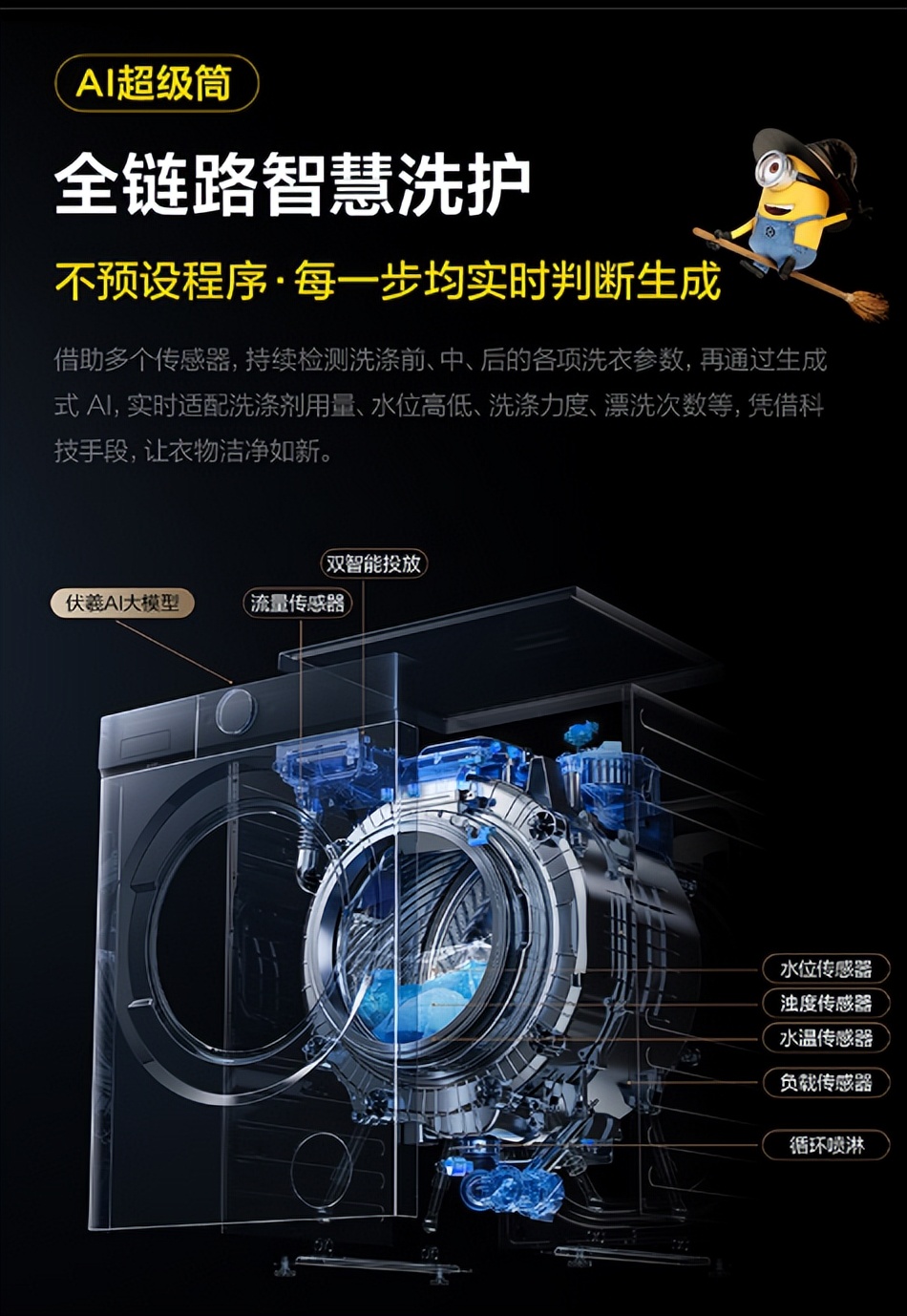 冰箱、电视、洗衣机作为年底家电换新必入的三大件,其中洗衣机堪称“必换优先级TOP1”,核心原因在于年底大扫除的刚性需求。随着春节临近,家庭深度清洁进入冲刺阶段,拆换下来的床单被褥、窗帘沙发垫,以及积攒的各类衣物堆积如山,材质混杂且污渍顽固。传统洗衣机普遍存在洗净力不足、无法混洗、容量有限等问题,要么难以去除油渍、果汁渍等顽固污渍,要么需要分桶多次清洗,不仅让洗衣机“连轴转”,更耗费人力物力,让大扫除变得费时又费力。一台靠谱的洗衣机,能直接解决年底洗衣难题,让清洁效率翻倍,为新年营造洁净舒适的家居环境,因此只要家中洗衣机出现性能下滑,年底务必及时更换。