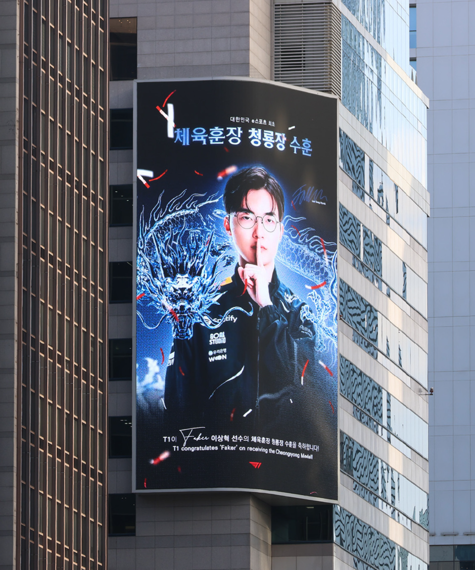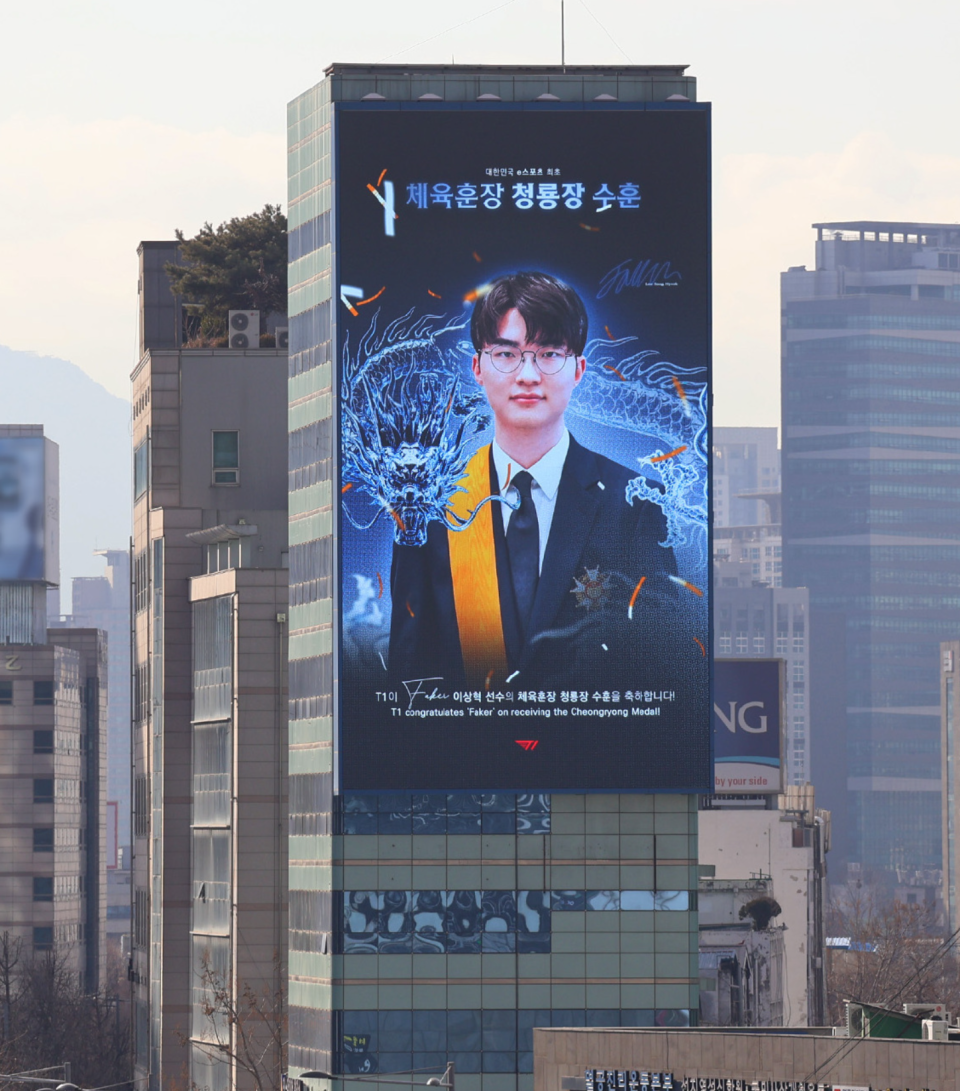 在Faker获得韩国体育界最高荣誉勋章"青龙章"后,T1对自己家的队长也是非常的宠,承包了首尔多处广告大牌,放上了应援,把这个事情广而告之,毕竟这个不管是Faker个人也好,也是T1的一份荣耀,不管是选手身份还是队伍股东身份,都已经是不可分割的!不知道今年的Faker是否能够带领T1,再创新的荣誉,我们拭目以待吧!