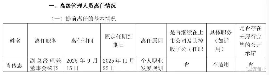 9月16日,有友食品发布公告,副总经理兼董事会秘书肖传志于9月15日提前离任,距离其6月6日上任仅三个多月,原因显示是“个人职业发展规划”。这一消息如同投入平静湖面的石子,激起了资本市场对有友食品治理结构的广泛质疑。