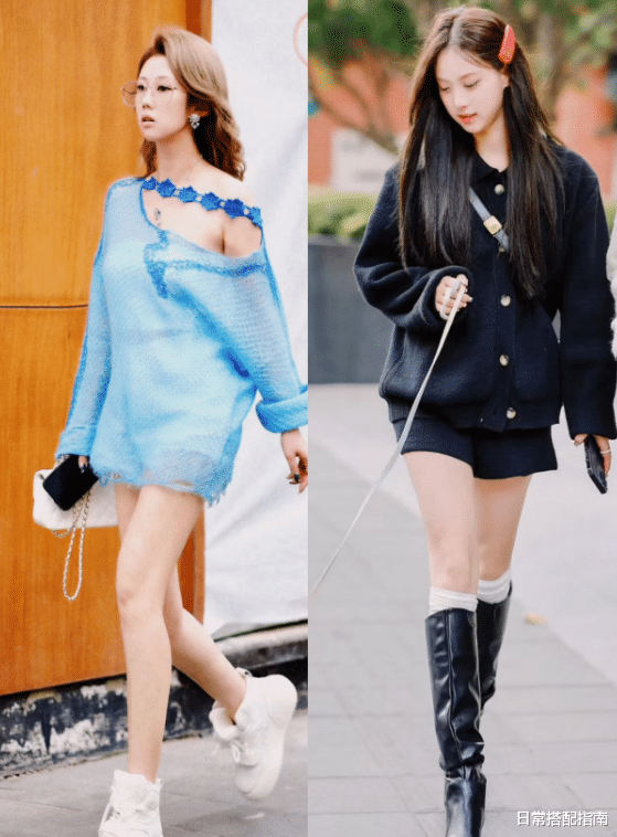 光腿神器这种单品由于贴身是很突出腿型的,但是有的女生腿型不好,那么我们就可以在光腿神器的外面搭配一双黑色或者白色的筒袜,来减弱那种过于贴合身形的效果,让下身更有层次感。