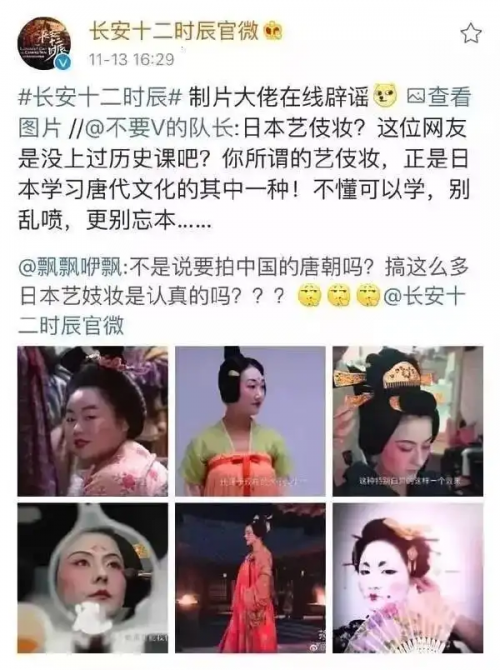 南京茶饮品牌“伏见桃山”因与日本明治天皇陵墓名称相似,遭到网友质疑,最终更名为“伏小桃”。梅见青梅酒是中国青梅酒品牌,但却有人说“梅见”二字“定语后置太有日本味”。实际上,中国农历二月自古便被称为“梅见月”,这是独属于中国的浪漫。古装剧《长安十二时辰》播出时,许多人就认为剧中人物的妆容模仿了日本“艺妓”。实际上,所谓“日本艺妓妆”正是日本学习唐代文化之后的结果。