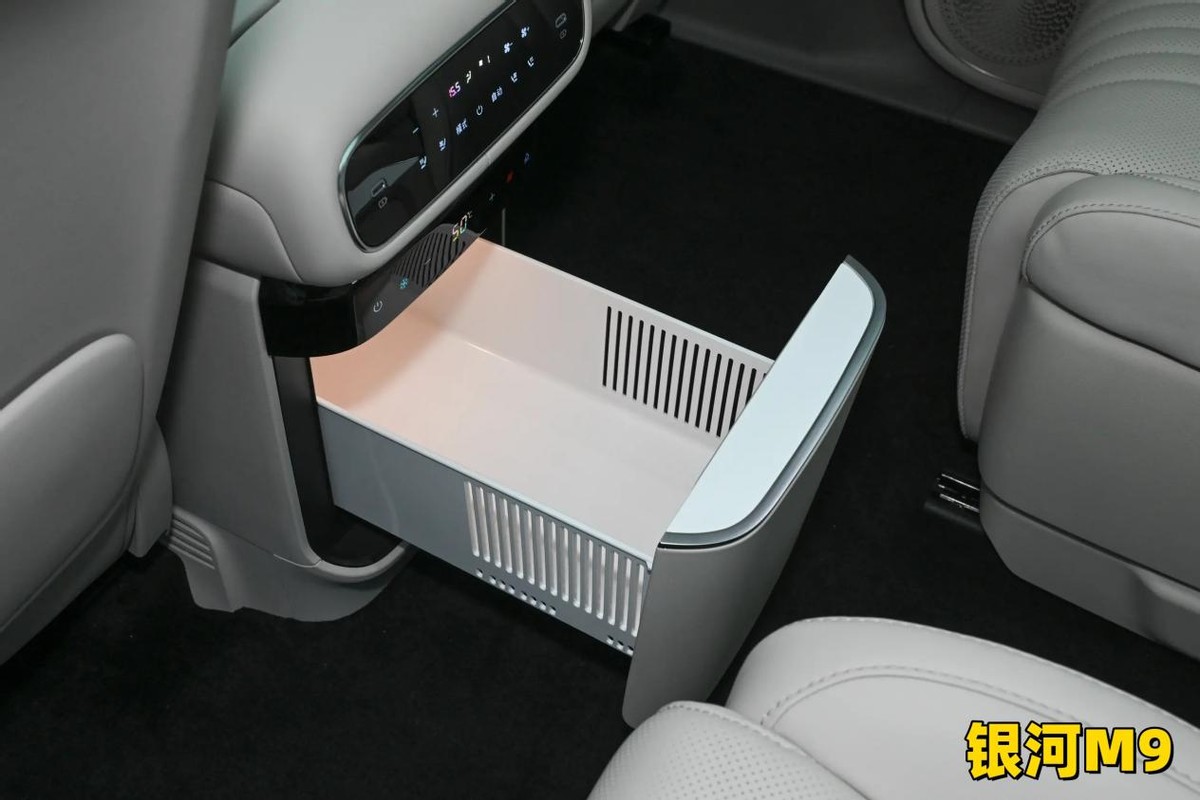 舒适配置细节上,深蓝S09的一体式智能移动中岛可以说是返乡神器,搭配10L车载冰箱,支持电动调节,春节长途时把中岛移到二排,老人小孩拿取零食、饮料不用起身,格外省心;银河M9仅有9.1L车载冰箱,无移动中岛功能,后排乘客取物需前倾身体,便利性大幅逊色。此外,深蓝S09后备箱还有自动下降功能,打开时自动下降30mm,老人小孩拿取物品更轻松,这个贴心设计特别适配春节出行场景。