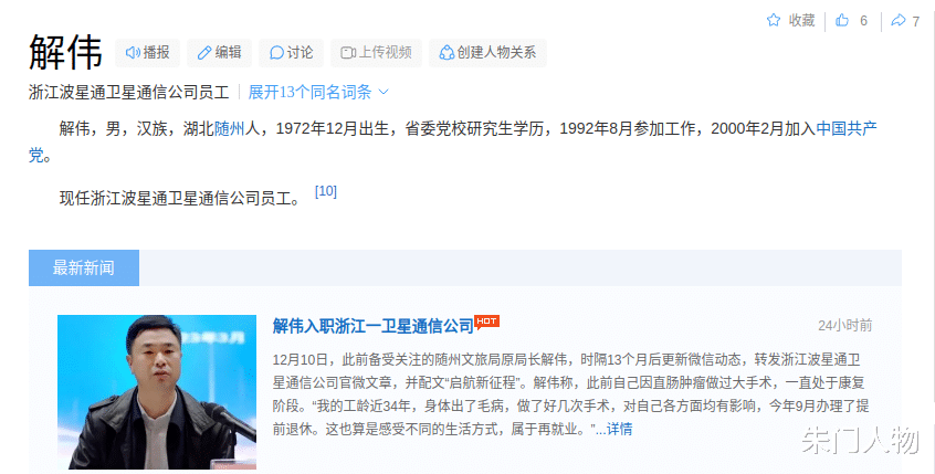 有人说他 “被调走了”,有人猜他 “退圈了”,直到今年 12 月 10 日,他的微信动态突然更新:转发了一条浙江波星通卫星通信公司的文章,配文 “启航新征程”。