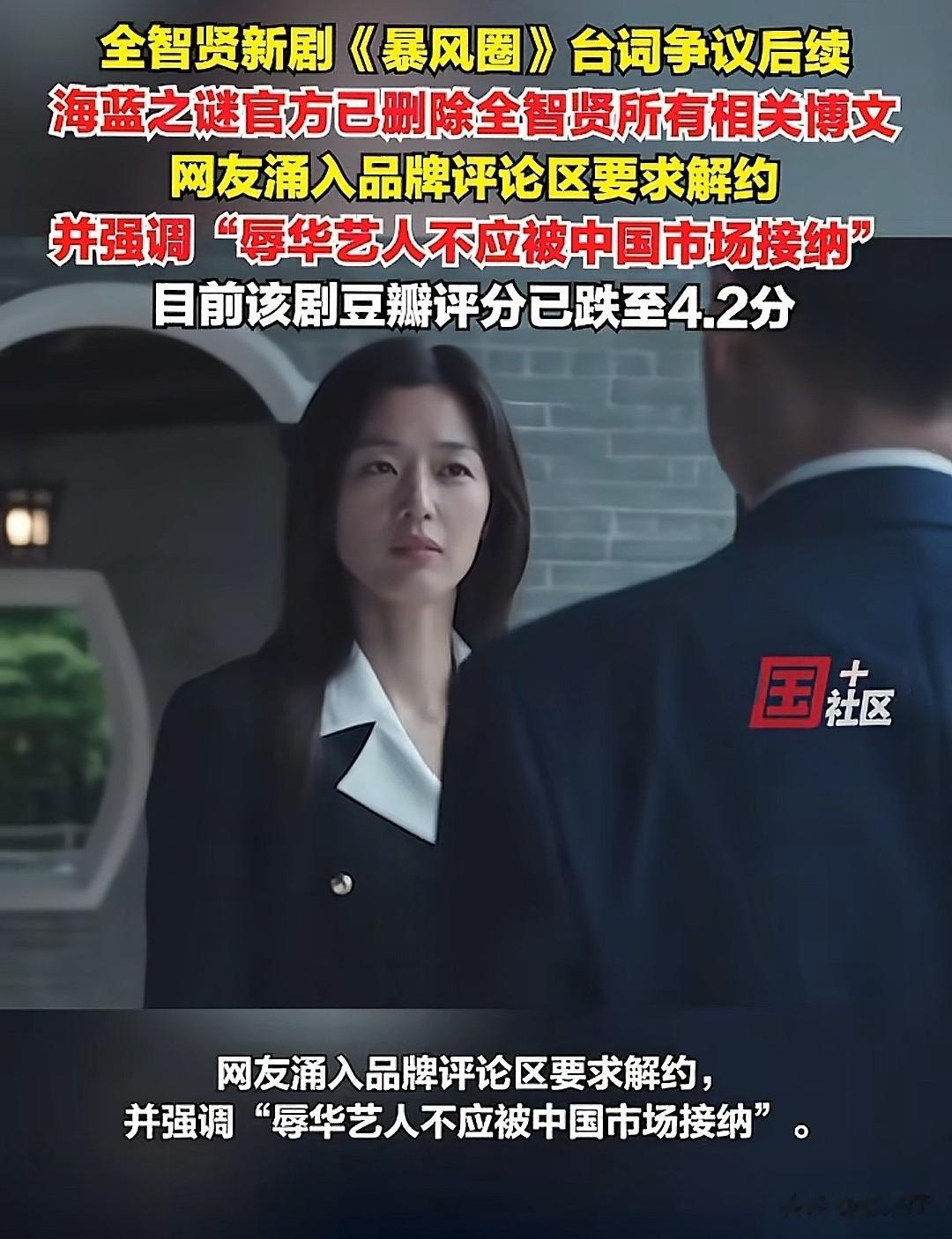 当中国观众因被冒犯而表达不满,当 LV、海蓝之谜等品牌纷纷撤下她的代言广告时,全智贤的笑声难免让人解读为:她根本没把这份来自中国市场的反馈放在心上。这种态度上的轻慢,比台词本身更伤人心。