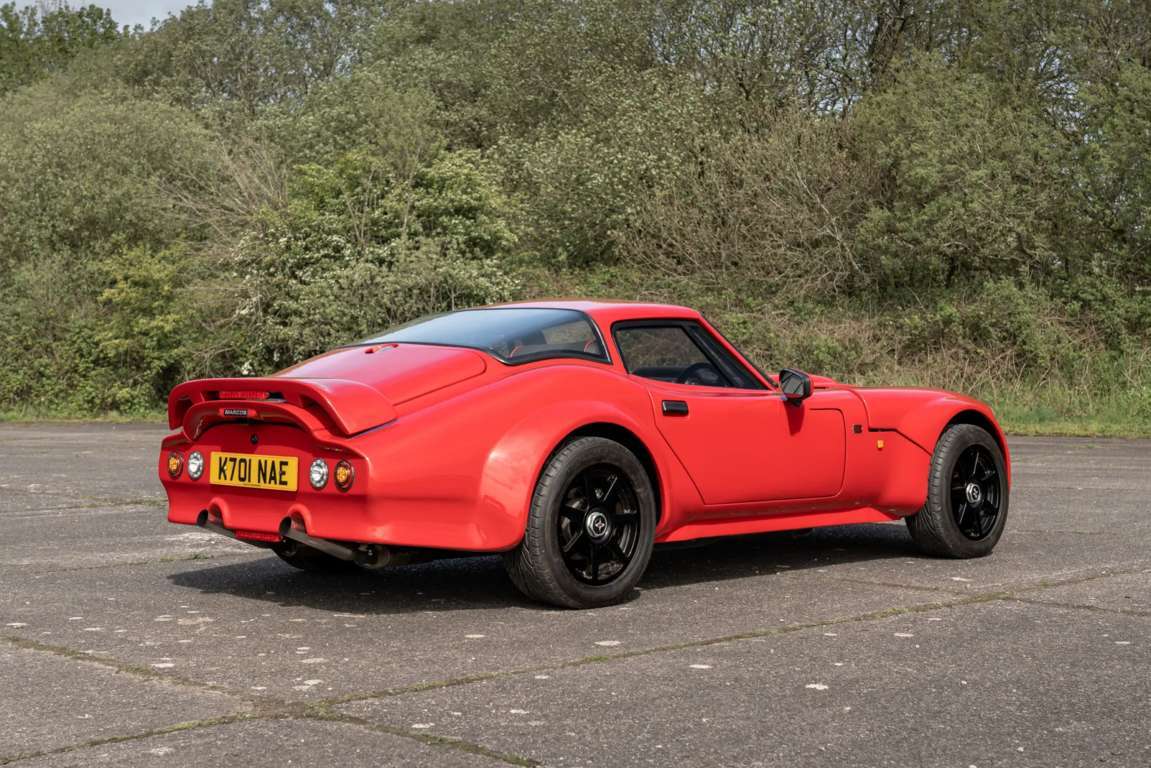 1981年,Jem Marsh重新收购了Marcos品牌(他早在1976年就买下了模具),并重启生产。最初只提供套件形式的经典GT车型,直到两年后推出了全新的Mantula。这个名字本身就暗示了其强悍本质——融合了"manta"(蝠鲼)的优雅与"muscle"(肌肉)的力量。