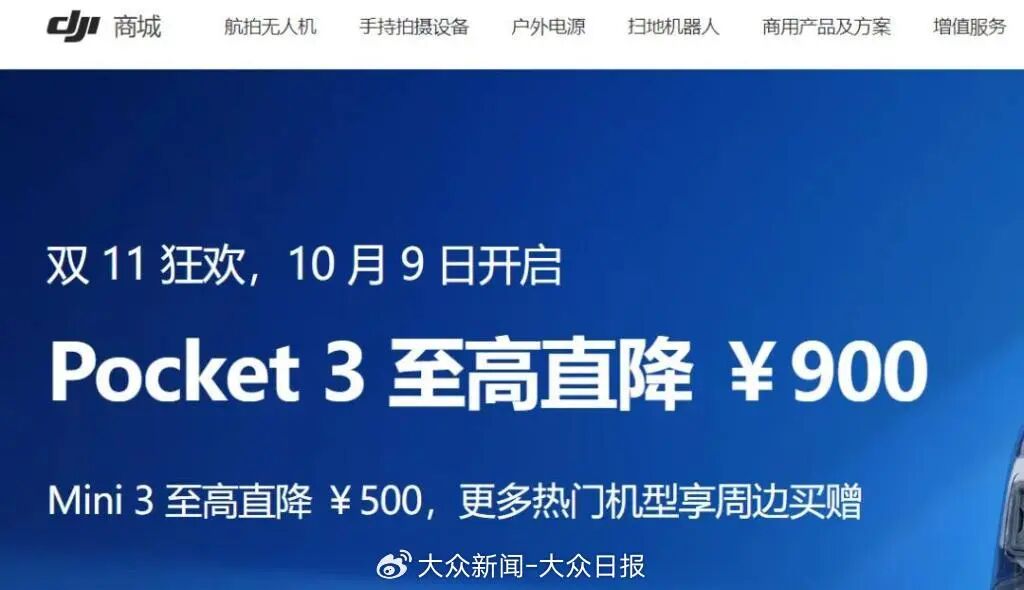 比起小鹏靠实力引发的争议,「大疆」10月的「降价操作」则纯粹是“自找不痛快”。10月9日,大疆Pocket3标准版突然从3499元降到2799元,全能套装直降900元,刚买没几天的用户直接炸了。大疆回应说是“双十一常规促销”,但「不给补差价」,只让用户「“退货重买”」 。