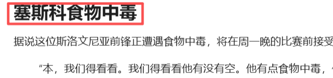 (1)锋线核心塞斯科食物中毒,大概率缺席!