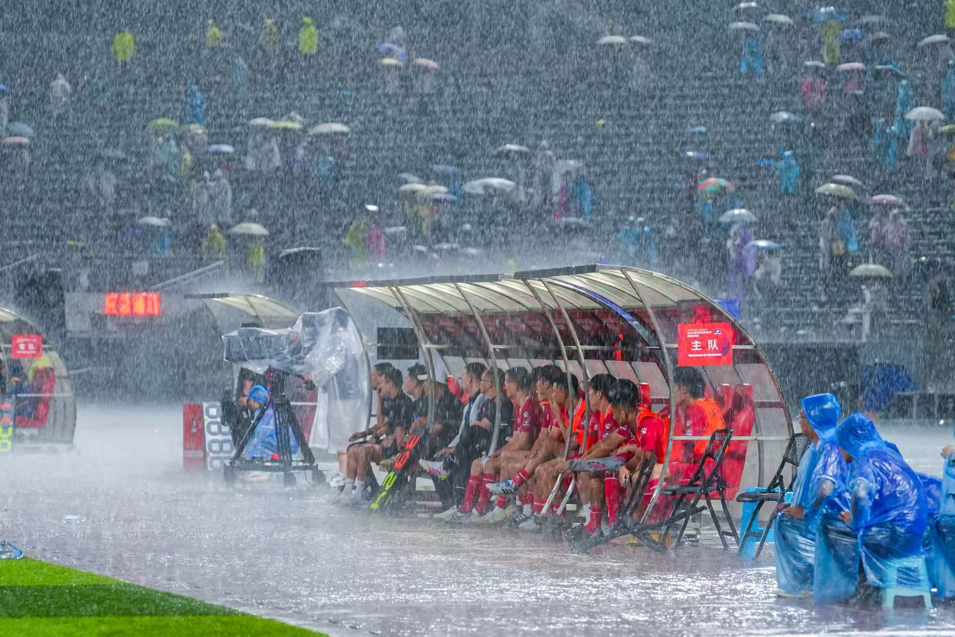 天气预报说晚上会有雨,所以球迷们陆续入场的时候大多也是拿着雨伞或者身着雨衣,他们尚未完全意识到,这场暴雨,将彻底改写这个夜晚的剧本。