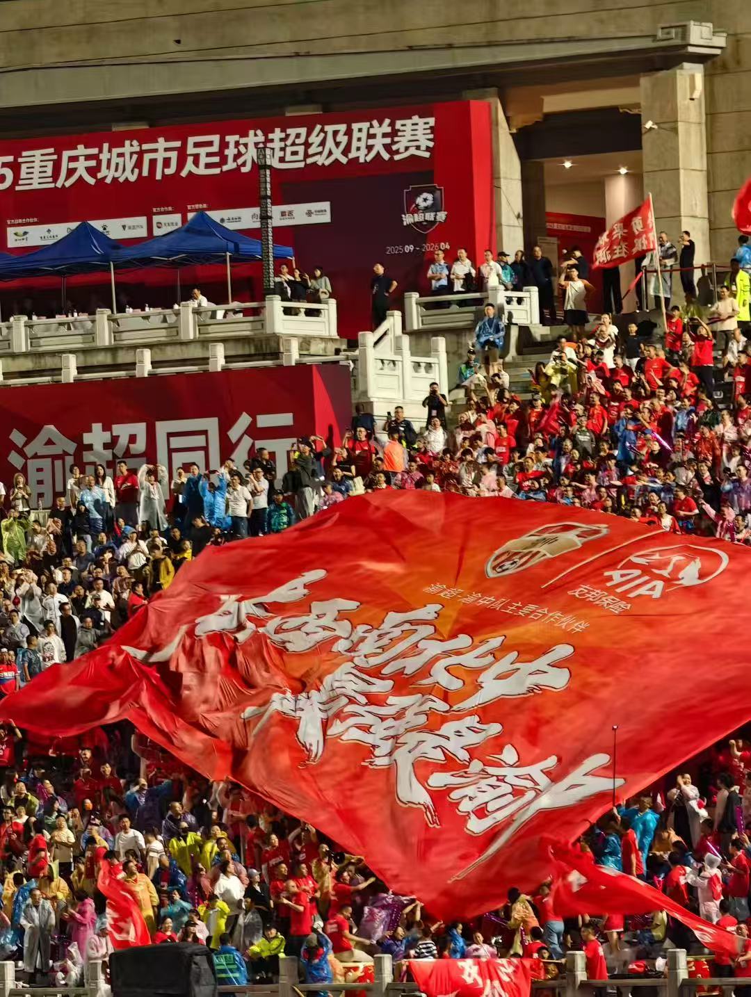 今晚的大田湾,每个球迷都是这场浪漫故事的参与者,他们用湿透的衣裳和沙哑的嗓音证明:陪伴,是最长情的告白;风雨同舟,是这座城最硬的浪漫。