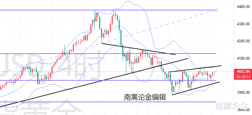 并且,此时高低点相连的话,上一周我们说到的楔形结构,或者说是变形了的通道结构,再一次发挥作用。此时关注到呢,就是上周五的高点,差不多是4030—40左右的初步阻力。其次呢,就是进一步破位,那么行情将会重新回到相对高位的抉择。这个相对高位呢,就可能要冲击一下从高位连下来的斐波那契61.8%左右,也就是说4050一带的四十时代的中枢位。