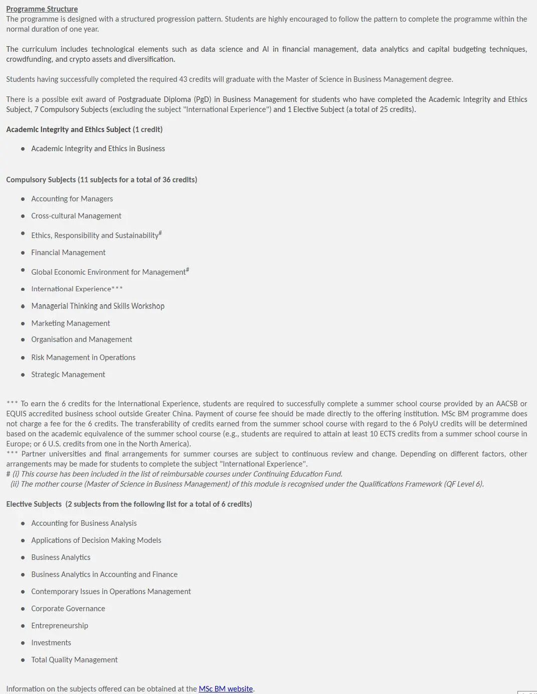 Scheme/Programme:MSc BUSINESS MANAGEMENT