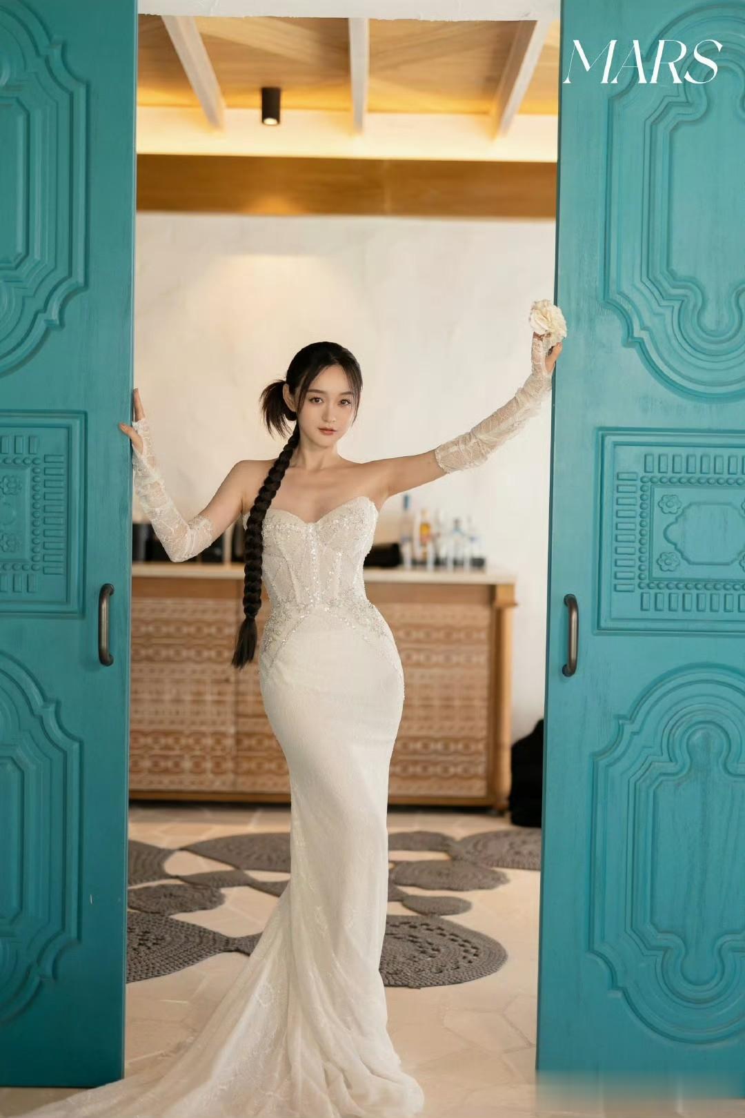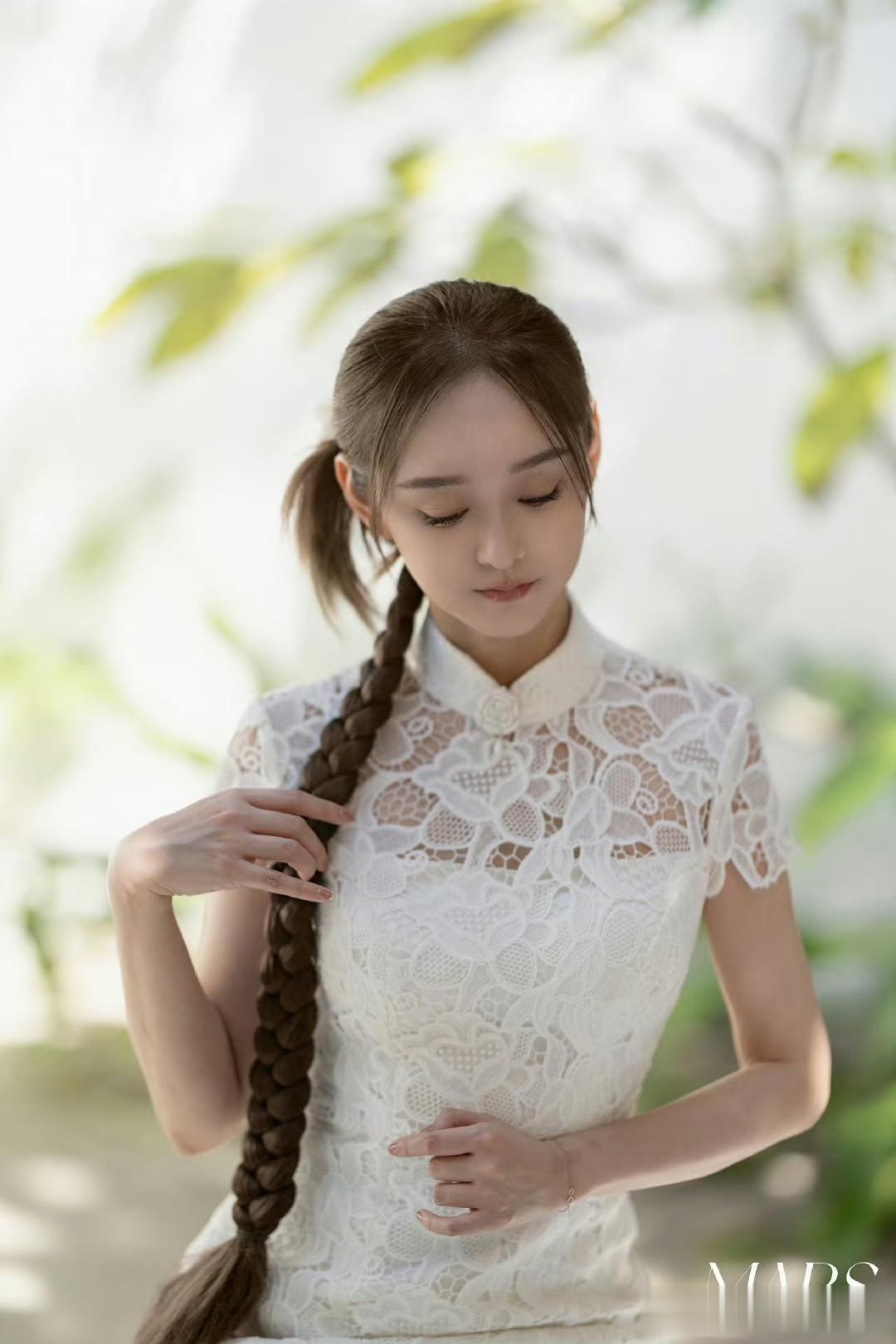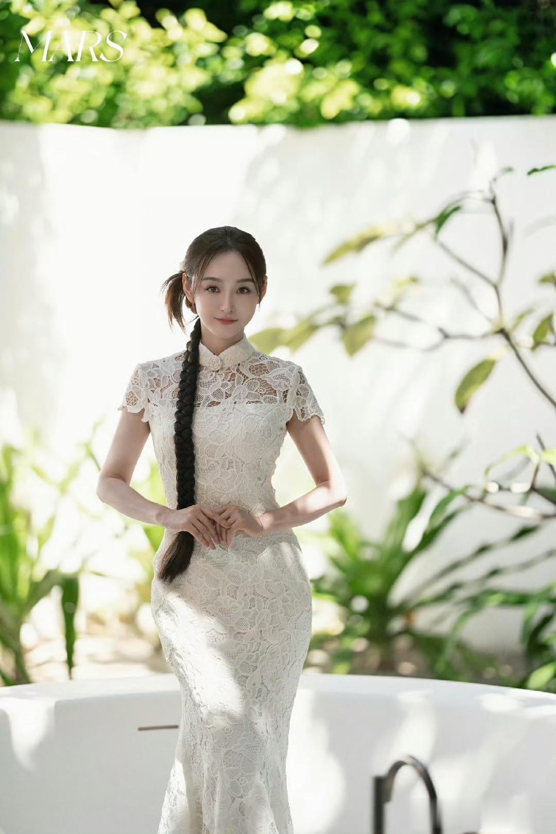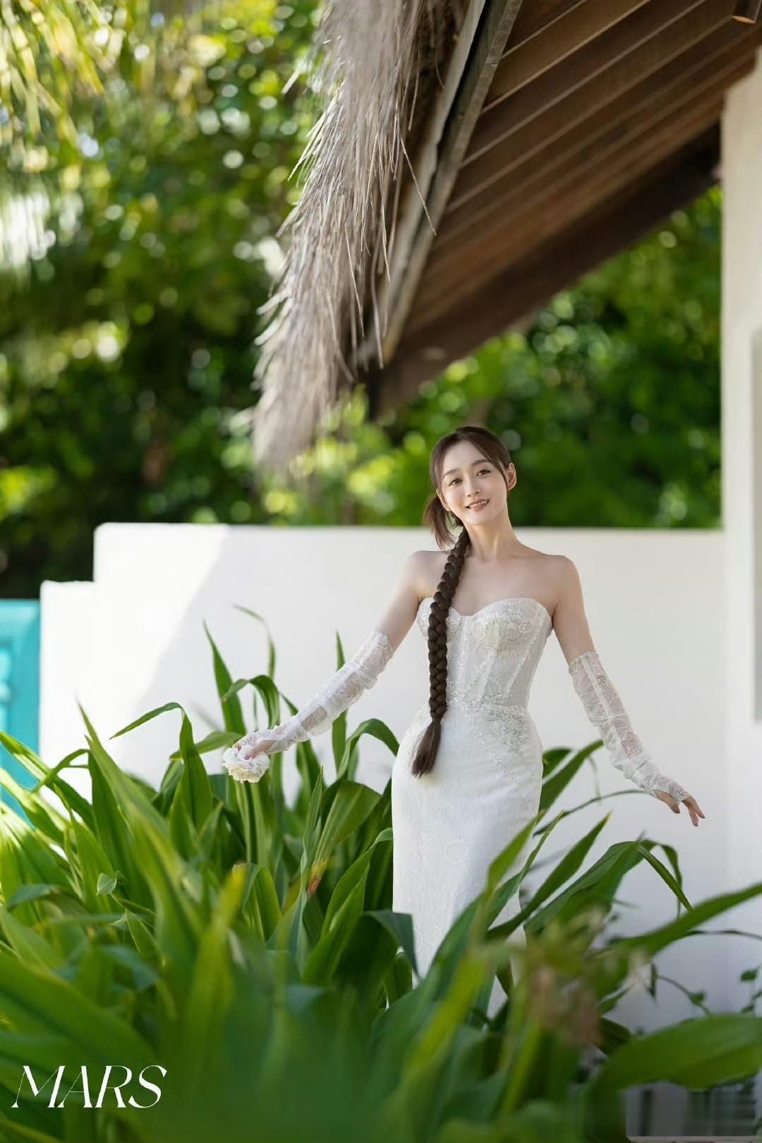 先是白色婚纱,蕾丝与亮片点缀,柔和光线洒在身上,安静坐姿尽显优雅;接着换上白色蕾丝旗袍,拂过麻花辫浅笑,东方韵味十足。戏外的她时尚品味独特,平时穿搭也有亮点,白色宽松毛衣搭黑色半身伞裙,青春减龄;白色吊带裙配大红长靴,吸睛又有公主范。这组旅拍真让人感受到她的美与时尚。