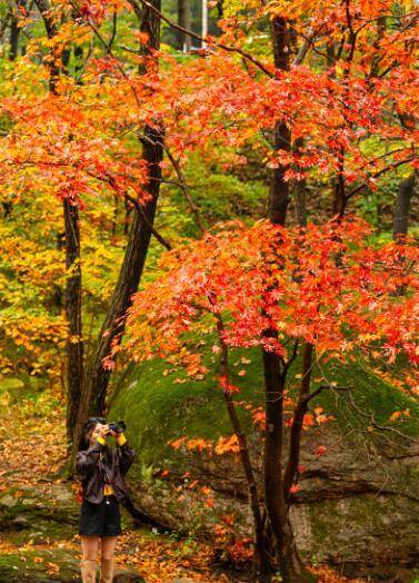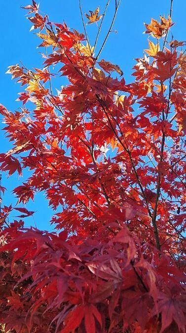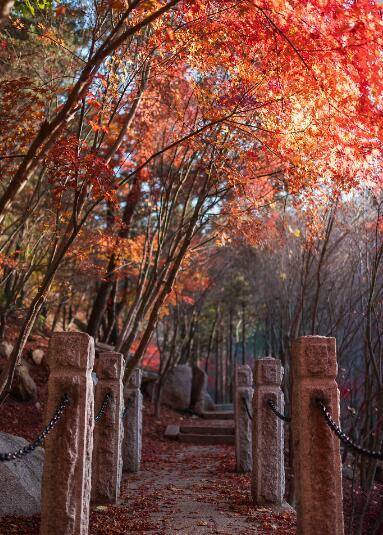 下山时,阳光渐渐西斜,红叶的颜色又添了几分暖意。水珠早已蒸发殆尽,但叶片上的红色却愈发深沉,像是将阳光都吸进了肌理之中。我忽然明白,人们总说雨后初晴的红叶最美,不仅是因为雨水洗去了尘埃,更因为这场雨让红叶卸下了燥意,显露出最本真的模样——热烈而纯粹,鲜活而坚韧。