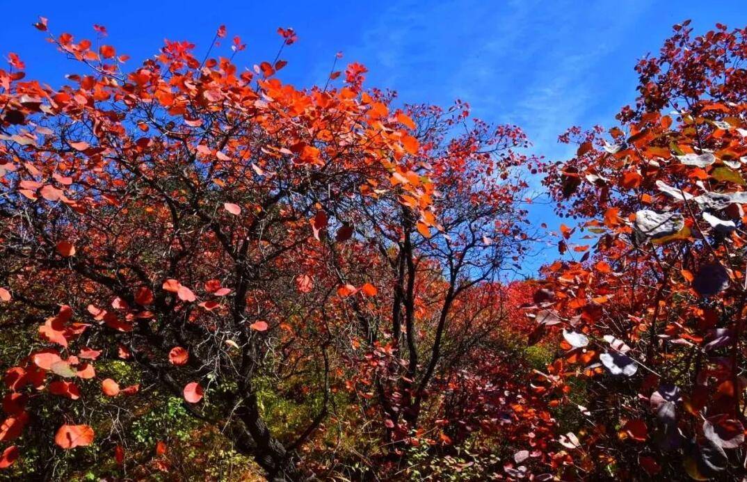 此前连日晴朗,山间红叶虽也热烈,却总带着几分燥意,叶片边缘微微卷曲,色泽中藏着一丝浅淡的灰蒙。而今夜雨过后,天地像被重新擦拭过一般,连空气都透着水晶般的透亮。阳光穿过云层时被滤得格外柔和,斜斜地洒在枝头,红叶便如被点燃的火焰,每一片都透着鲜活的光。