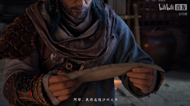 《归唐》的故事发生在唐末西域,张议潮率众推翻吐蕃暴政建立归义军,派遣十队信使前往长安报捷,最后仅有一队生还抵达长安。PV中主人公的儿子阿宁留下了书信,告诉父亲自己将响应沙洲义举,显然是自告奋勇加入了送信队伍前往长安,看得出来是一个充满家国情怀,但行事极为冲动莽撞的孩子。