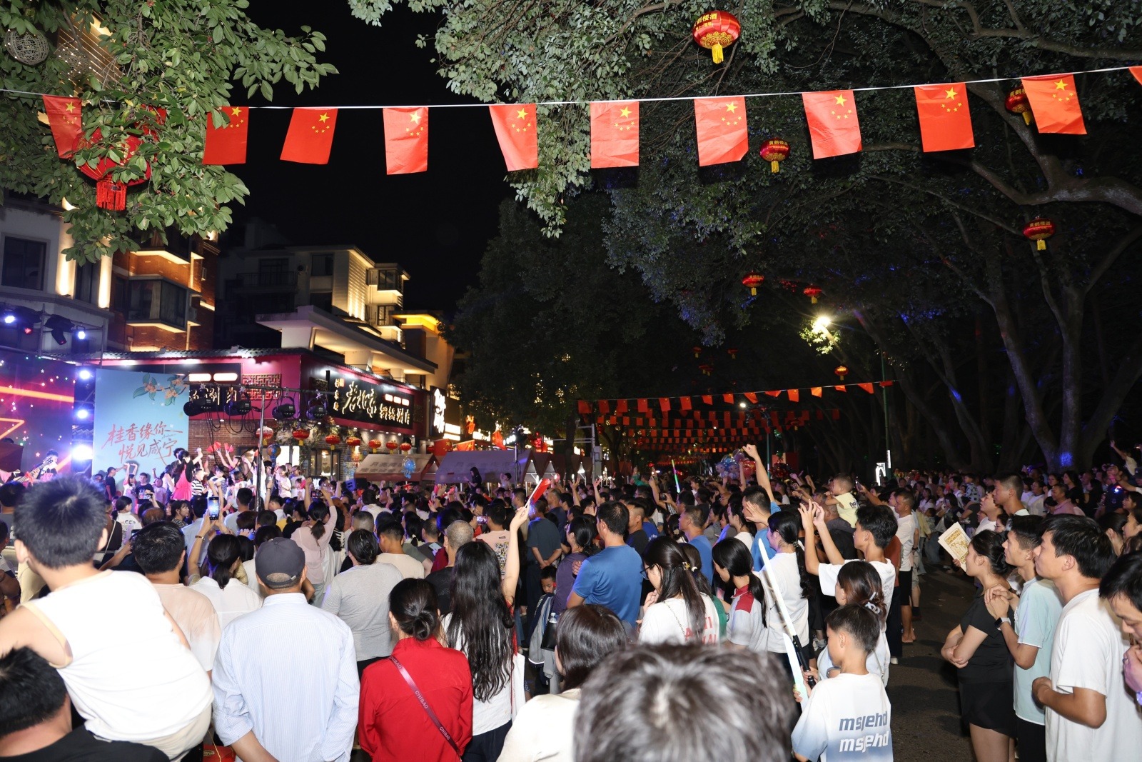 由咸宁市文旅局主办、湖北广播电视台交通广播承办的“桂香缘你·悦见咸宁”月亮湾街区金秋惠民演出季国庆特别节目在此上演。