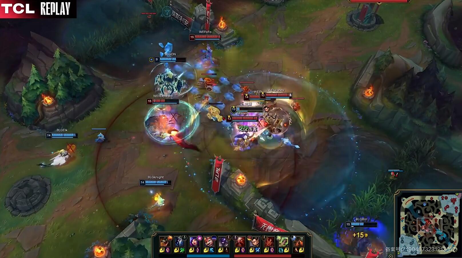 前期两边在下路连续交手互有来回,中期WE逐渐将重心移到上路,给剑魔喂下两颗人头,BLG则是在下半区占据领先。中期Iwandy绝活巴德表现活跃,无论是开门救人还是开门带队发动突袭都相当精彩。