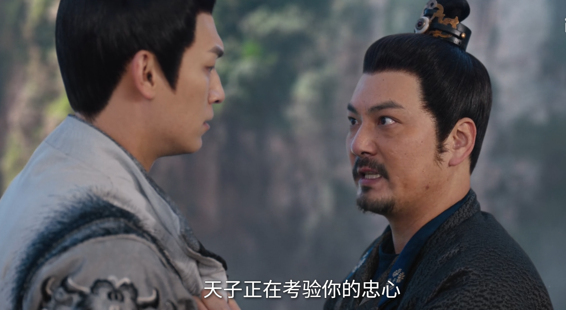 卢凌风和苏无名在崖边交谈,交谈面圣之后怎么说,苏无名说敖天的事情可以讲,李奈儿的身世不能提,不然会引起天子和公主进一步对立的。