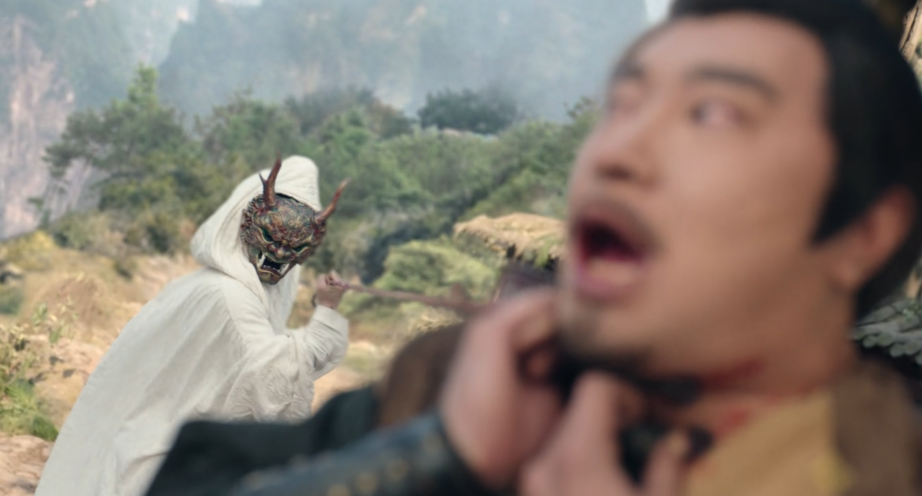 霍优要逃跑,结果被一白衣带戴白泽面具的人一爪子勾住了脖子,丢了姓名,这个爪子确实像野兽的。