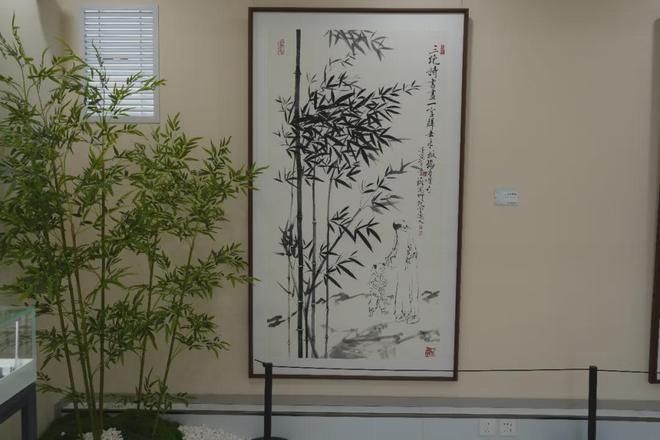 《九天君竹图》以六幅丈八尺宣连缀而成,近八百二十平尺,画中竹枝遒劲擎天,气势磅礴,形神相生,透现出坚韧不移的风骨与深沉蕴藉的时代情愫。