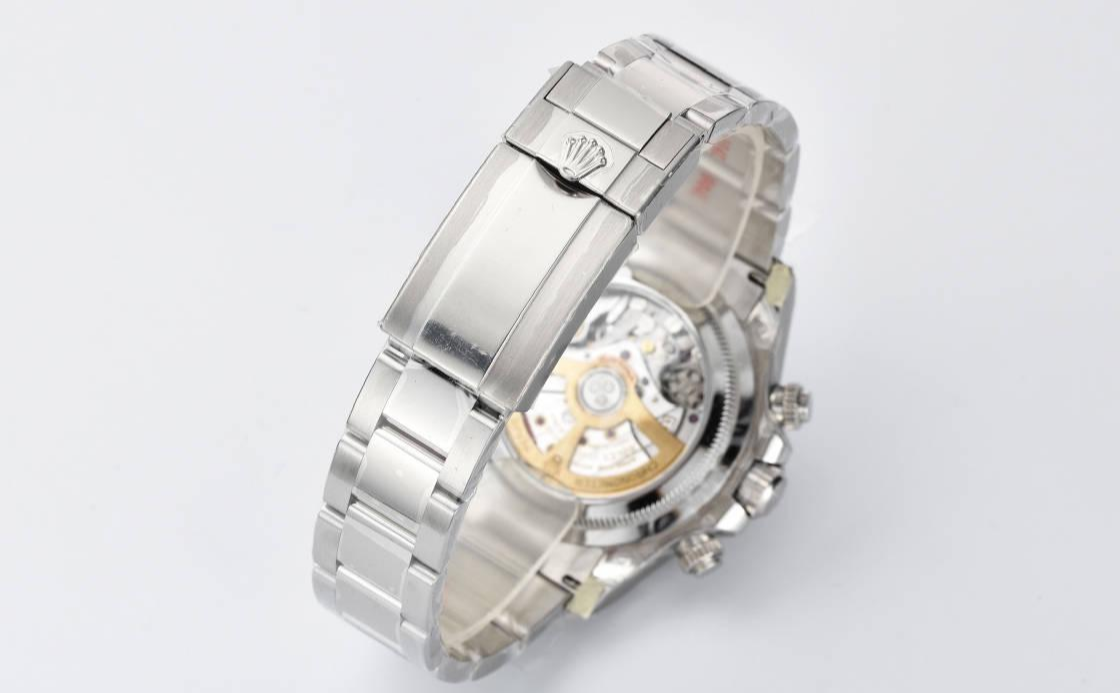 表壳与表带:表壳采用18K白金质感镀层,经过12道手工抛光工序,表耳弧度与正品误差小于0.3mm。表带采用抛光拉丝工艺,倒角处理细腻,手感极佳。