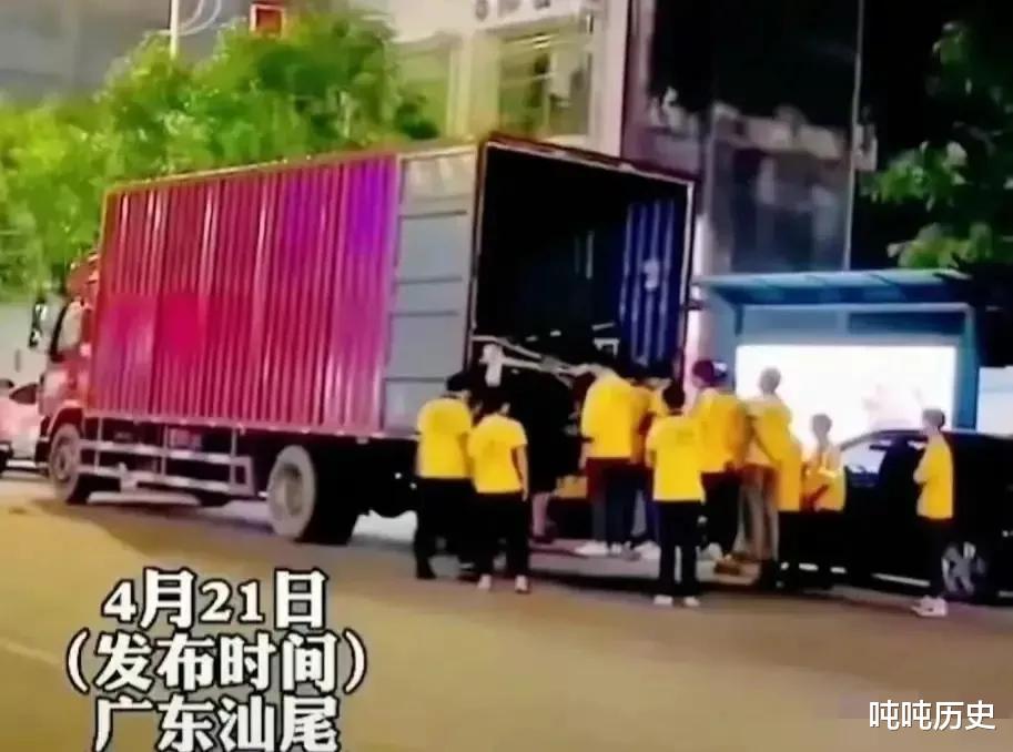 4月21日晚,广东汕尾,当地街头,满载电瓶车的大货车,齐聚汕尾街头,场面异常壮观。