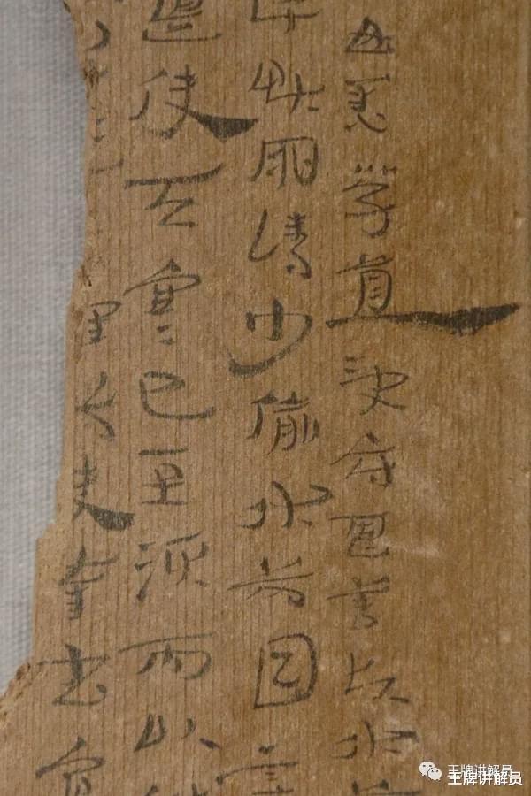 (草书《张宣致稚万书信牍》局部,西汉中期至东汉初期,甘肃肩水金关出土,甘肃简牍博物馆藏)