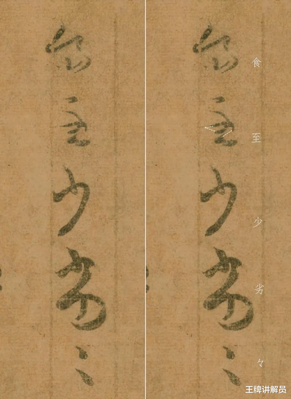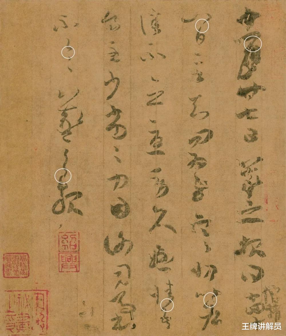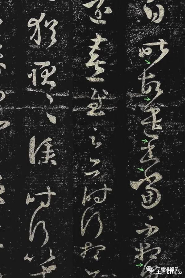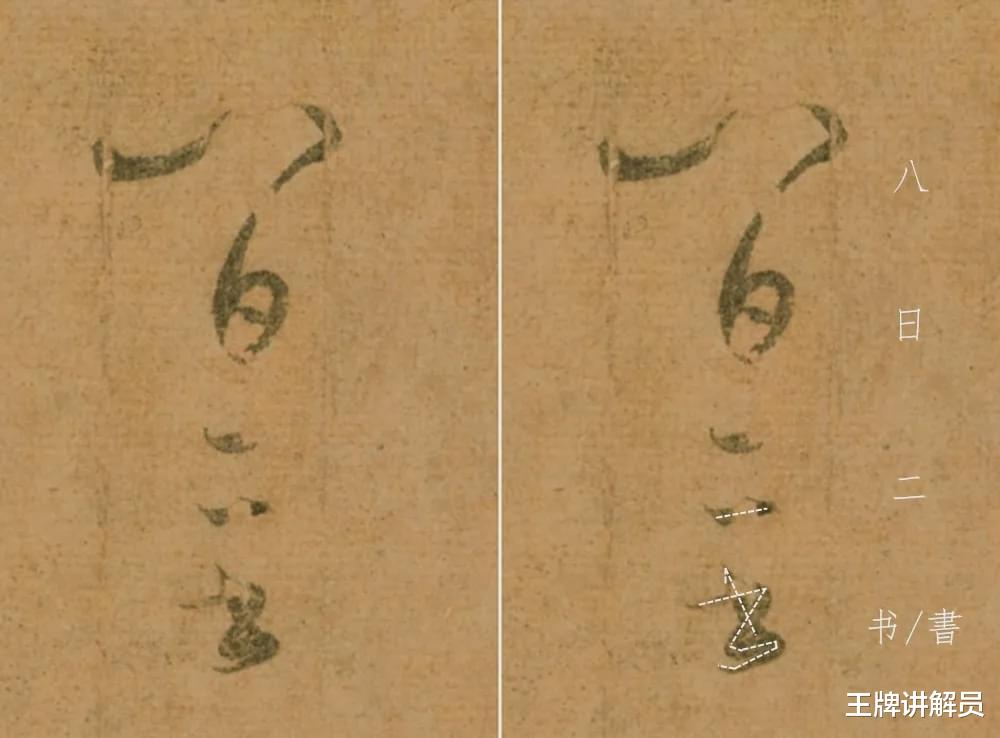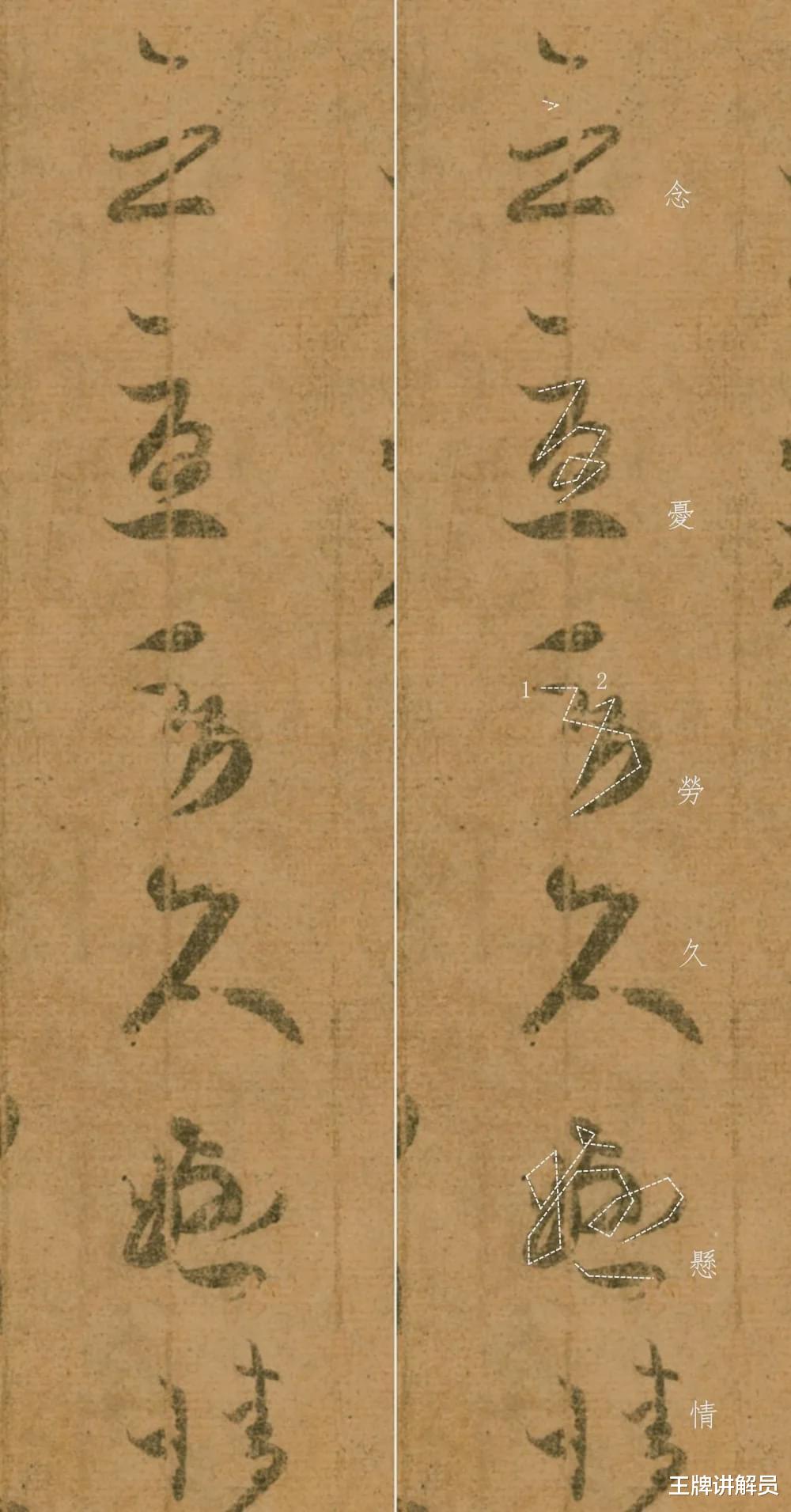 需要说明的是,由于年代久远,《寒切帖》磨损得比较厉害,所以我在必要的地方标出行笔路线和笔划顺序,可以跟原帖对照欣赏: