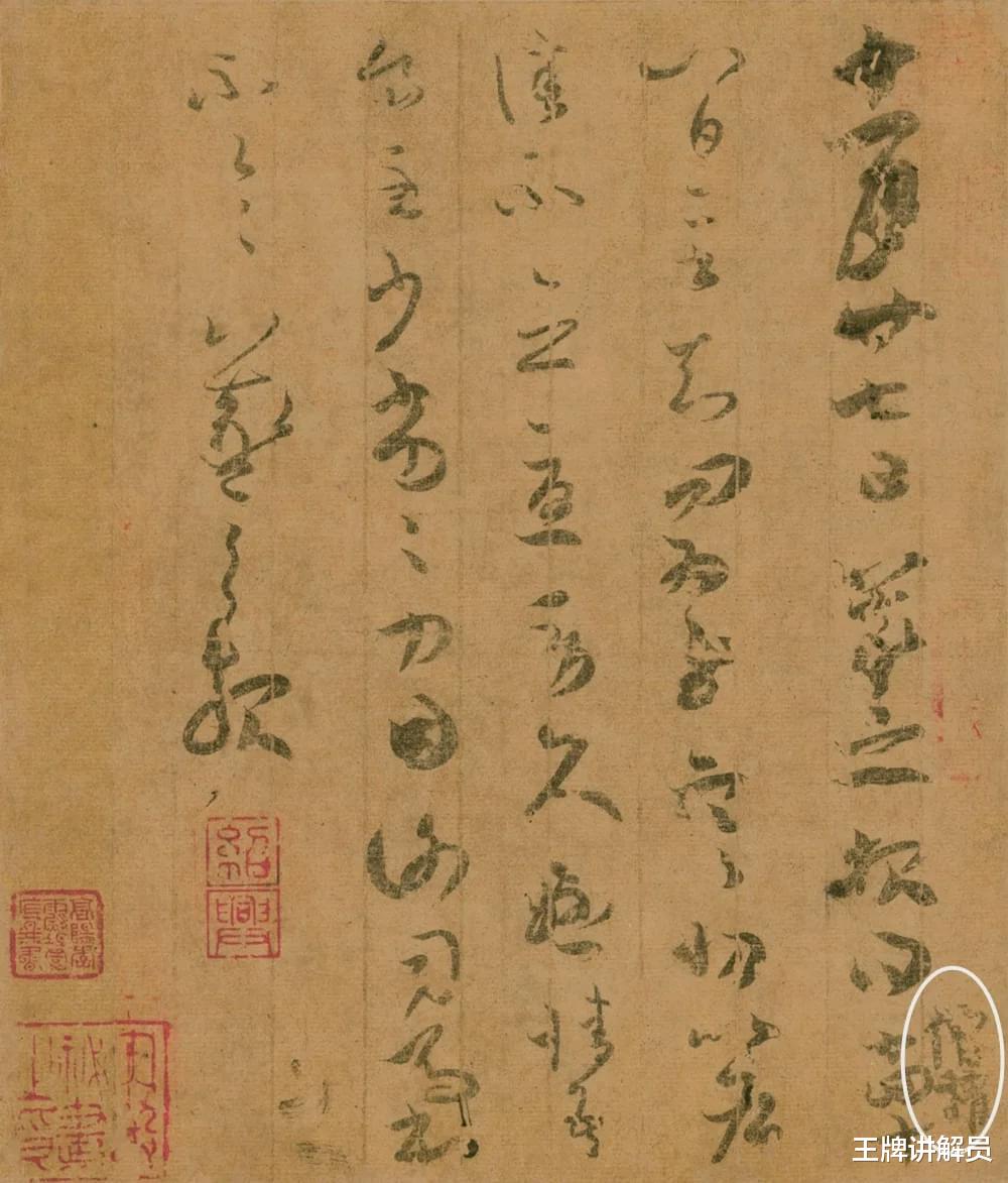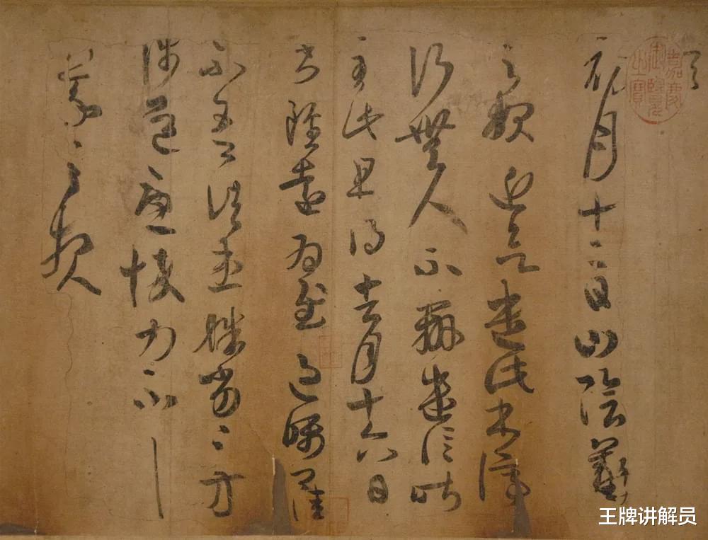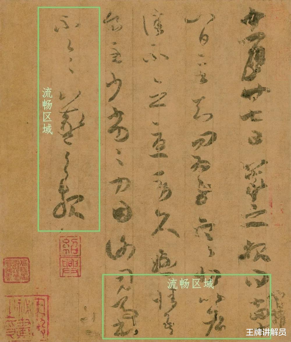 《万岁通天帖》里有两件书圣的作品,《初月帖》为其一。之所以用它对比《寒切帖》,一是因为《初月帖》是给拿给女皇看的,肯定临摹得好;二是因为两个帖子都是草书,用了很多相同的字(个中原因你应该能猜到);三是因为《初月帖》基本属于流畅的风格,与《寒切帖》有差异。