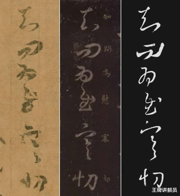 (各种《寒切帖》,左起为天津博物馆藏唐摹本、中国国家博物馆博藏宋拓本、某地藏明拓本)