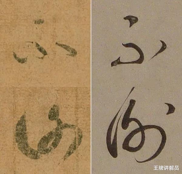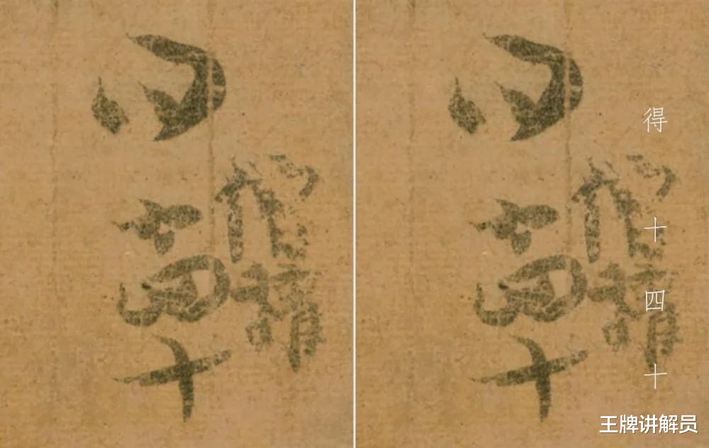 (“得”,左为《寒切帖》,右为《初月帖》)