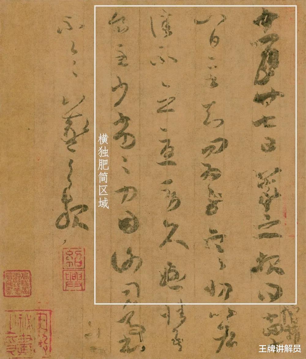 有趣的是,如果纵观全帖,你会发现“横”“独”“肥”“简”的特点主要集中在《寒切帖》的中间区域和右、上部分: