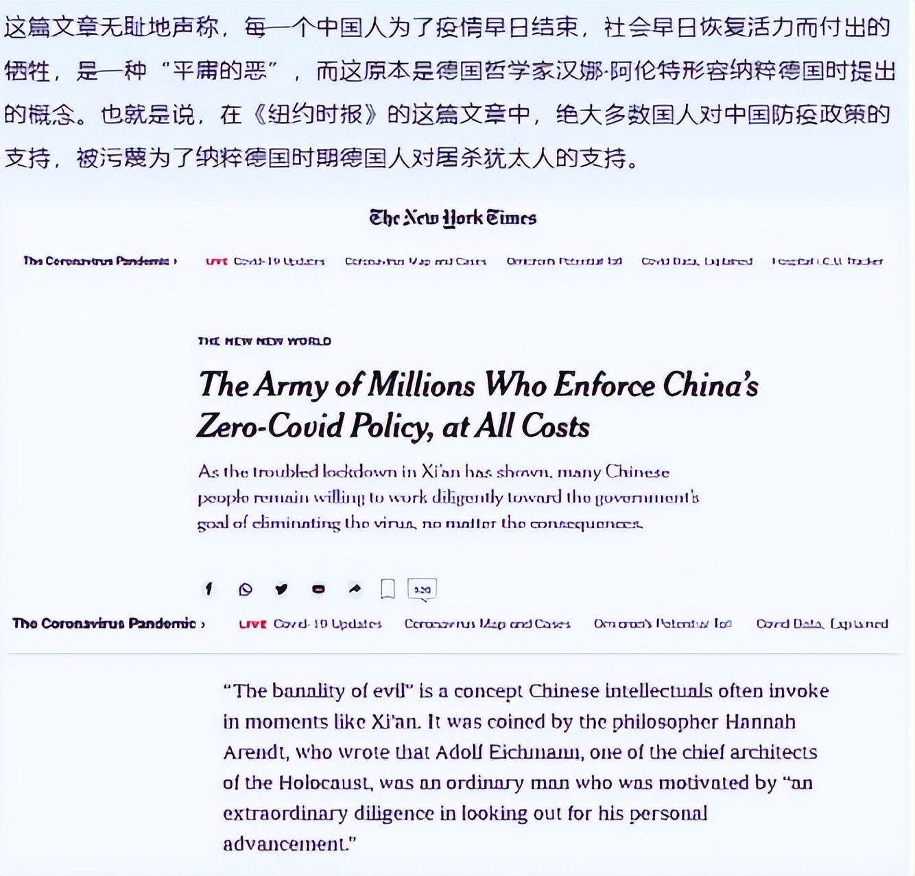 就说2022年西安抗疫那段时间,全国人民都在为这座千万级人口城市的战疫努力揪心,无数医护人员、社区工作者顶着压力坚守岗位,最终实现了零死亡的抗疫成果。可袁莉在《纽约时报》上发表的文章,却把这场众志成城的抗疫行动,硬生生写成了“混乱与危机”。