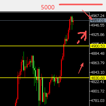 昨天的走势上面,黄金跳水,震荡整理后。多头卷土重来,上演暴力反击,一路狂飙,涨破4900的关口,今天来到4960的位置,涨幅超150美金。