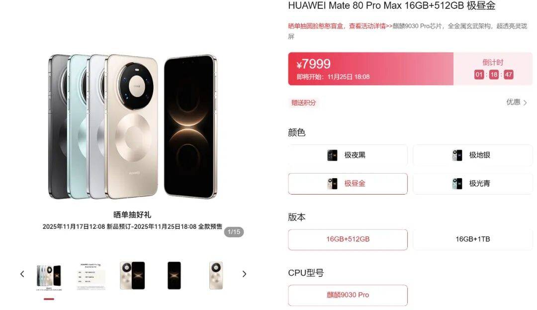 Mate 80 系列目前已开启预定,将在本周五 18:08 分正式开售。看起来这一代依然一机难求,发布会还没开始,官网发货的预计时间就已经排到了明年。