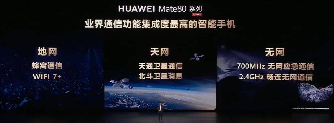 除此以外,Mate 80 系列还支持 WiFi 7+(地网)、天通卫星通信、北斗卫星消息(天网)、2.4GHz 畅连无网通信(无网)。