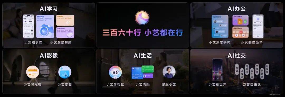 在新一代系统上的鸿蒙 AI,可以通过无处不在的系统级智能,改变人机交互的体验,覆盖效率、交互、影像、安全等场景。华为在发布会上展示了小艺 AI「再来一单」、「拍照攻略」等 AI 智能体能力,以及对话修图、AI 生成动态照片、照片变脸等新 AI 能力。
