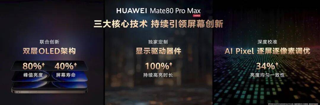正如此前所爆料的,华为 Mate 80 Pro Max 业界首发搭载了双层 OLED 架构的屏幕,它成为了业界最亮的手机屏,能实现最高 1% APL 峰值亮度 8000nits。