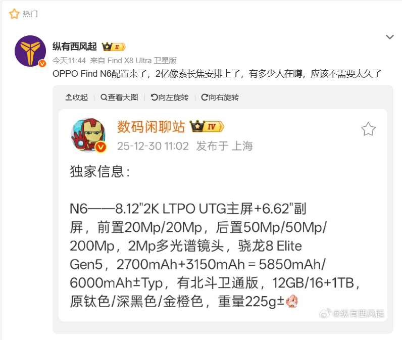 不过,国产厂商似乎并不打算给苹果“抢首发”的机会。最近,关于OPPO Find N6的密集爆料显示,它不仅有望在无折痕效果上“截胡”苹果,更可能以一套轻薄全能的配置,提前改写2026年折叠屏的竞争规则。