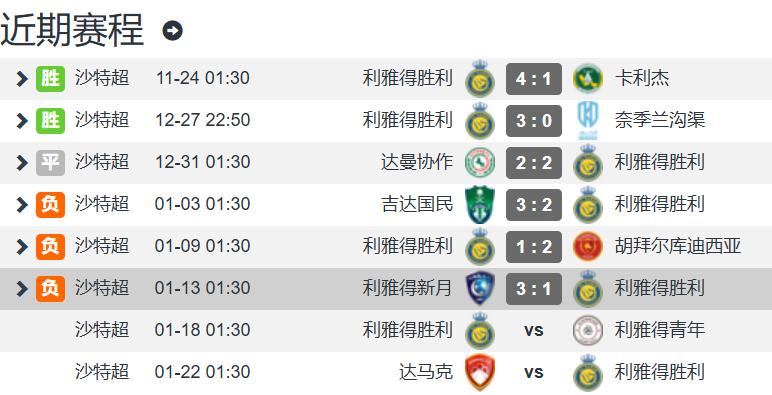 什么原因让利雅得胜利遭遇沙特超三连败&4轮丢11分?