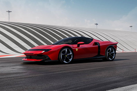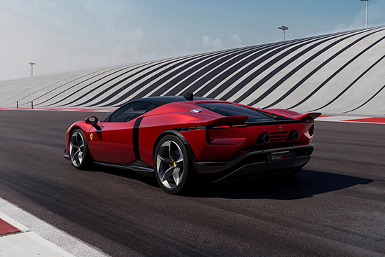新车从20世纪70年代法拉利Sports Prototype赛车中汲取灵感,并且保留了法拉利SF90上的诸多经典设计,包括双层前铲、后翼子板通风口等。侧面提供纵横分布的黑色装饰条,轮毂、外后视镜、车顶等部位均采用黑色涂装。尾部配备分段式双尾翼,设计灵感源自于法拉利512 S、512 M等车型。