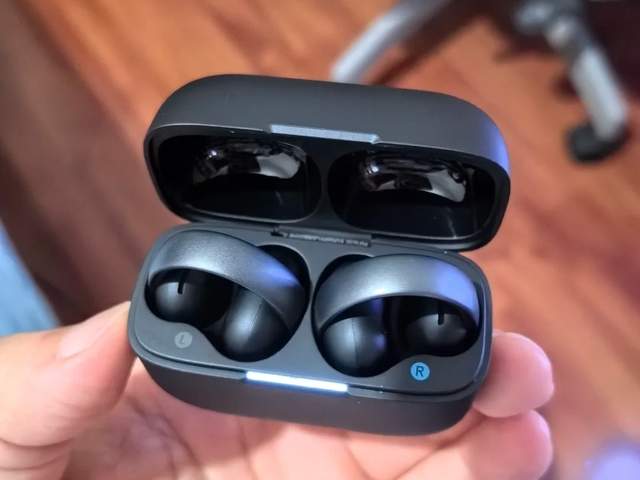 它自研的防漏音模式效果也很好,声音开到一半,旁边人基本听不见,在公共场合用不会尴尬。佩戴上,单只 4.5 克,几乎没存在感。2.5mm 错位设计让耳机形成前高后低的弧度,能稳稳卡在耳朵上,就算跑步、转头,也不会松脱,再加上 12°弧面耳托撑着耳背,长时间戴也不会觉得压耳朵。