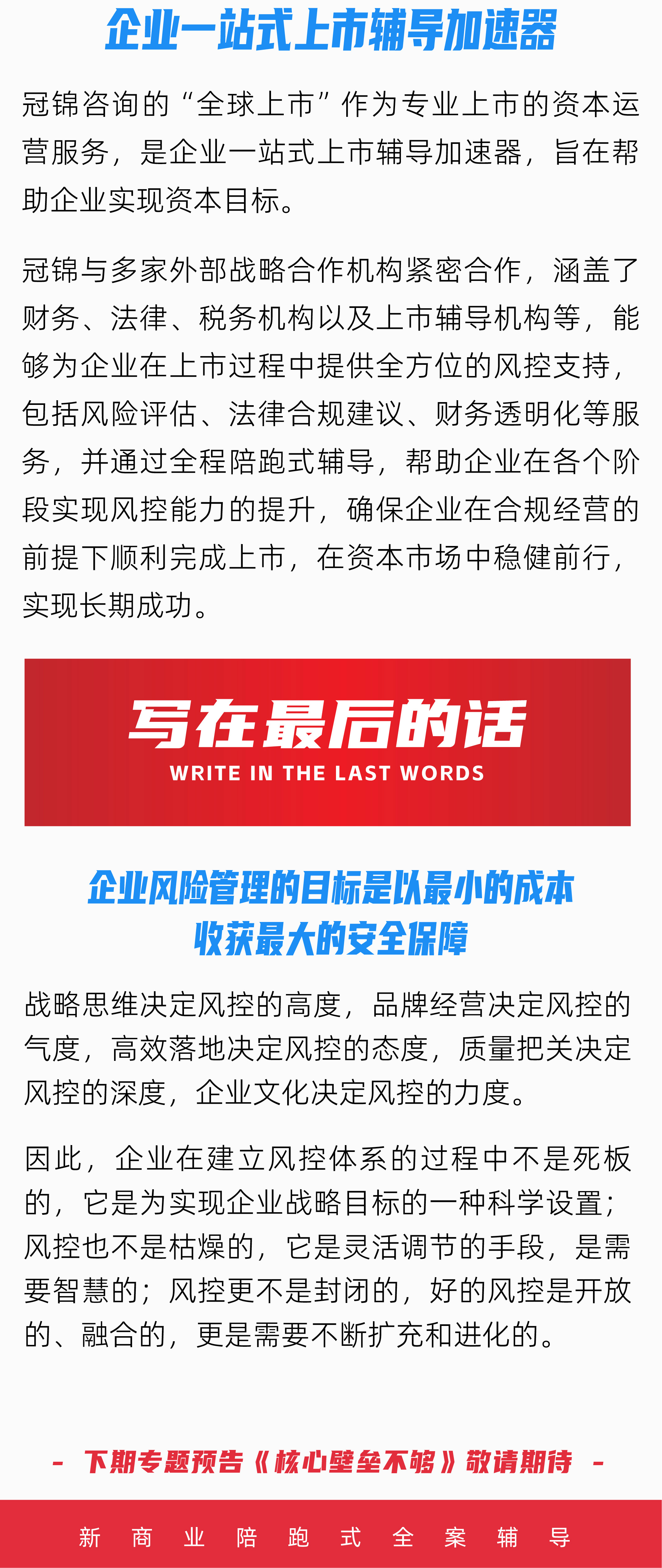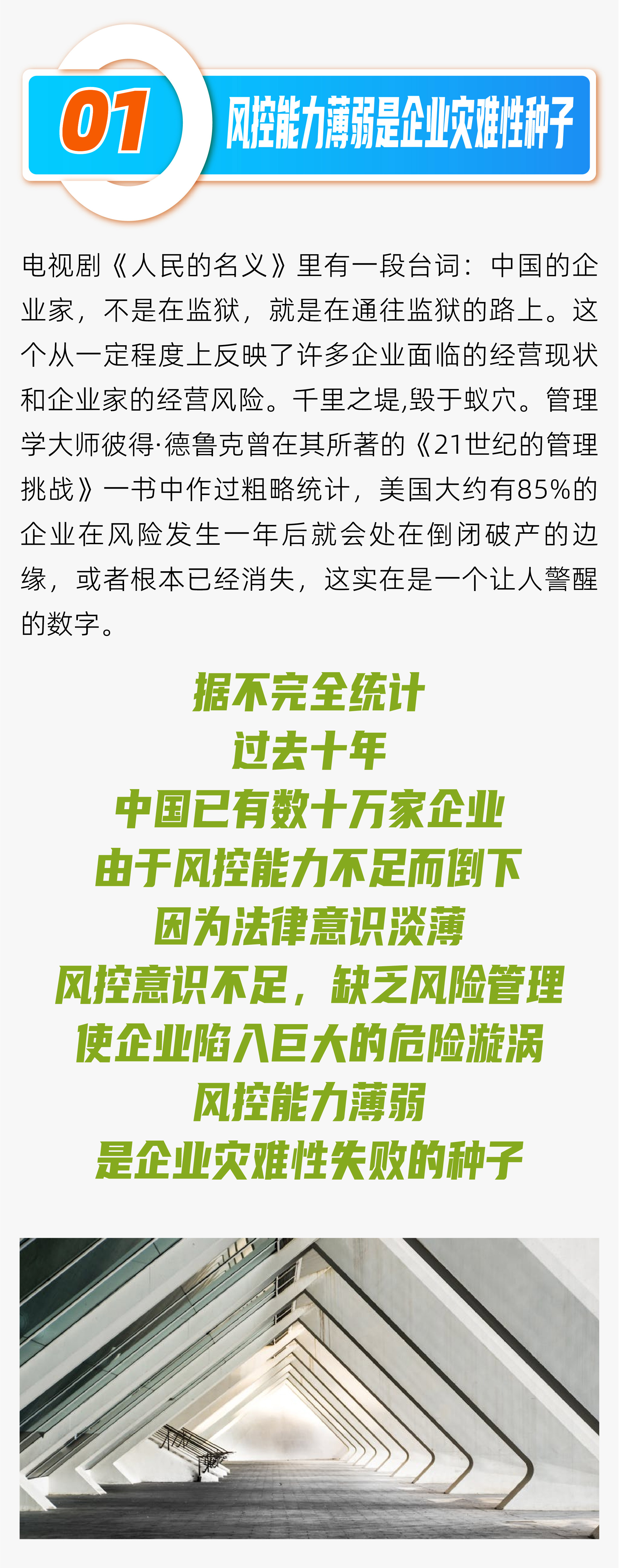 为了降低风险,组织需要投入资源来尽力减少、监控和控制负面事件的影响,同时最大限度地提高正面事件的影响。本章专题将重点分析企业风控能力不足的原因和表现,并分享如何构建风险管理体系,实现企业合规经营的四个具体措施,有助于确定如何最好地识别、管理和降低重大风险,帮助企业构建完善的风险管理体系,强化企业风控能力。因此本章专题的核心关键词是“强化”。