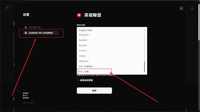 如果点击之后没有效果,也可以手动汉化,也很简单,打开游戏在拳头游戏界面的右上角,点击头像就能找到设置