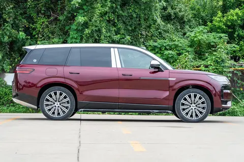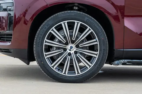 新款的配色是一大亮点,新增了紫瑢金、红雅金、蓝辰银、绿华银四款双色车身,还有霜云茶单色选项。这些双色方案上浅下深,七层手工漆面工艺让车身更有层次感,开在路上回头率明显高了些。实际停在停车场对比了一下,紫瑢金在阳光下闪着低调的贵气,不像一些亮色那么张扬,但又比纯黑白更有辨识度。轮毂是21英寸的铝合金,搭配米其林轮胎,视觉上拉长了车身比例。总的来说,外观没追求革命性变化,而是稳扎稳打,适合那些不喜欢太潮流、但又想有点个性的买家。不过,入门尊荣型没标配电动侧踏板,得加钱选尊越型以上,这点在城市里用起来还是挺实用的。