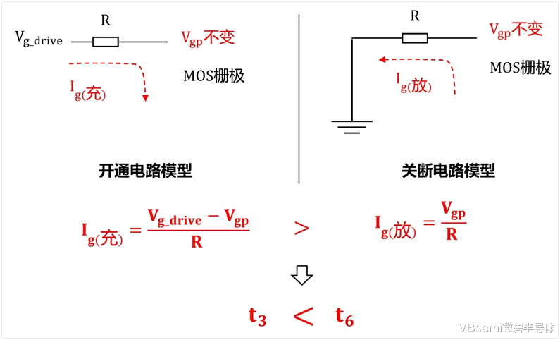 根本原因在于:即使栅极充、放电回路的电阻完全相同,MOS管天然的“关断”耗时也要比“开通”耗时更长 。