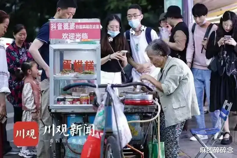 老婆婆在成都街头卖蛋烘糕小吃,偶然被成都电视台专题采访,随后便以“成都电视台抖音婆婆”为招牌大幅提高商品价格,迅速膨胀,一份几块钱的蛋烘糕小吃要卖到十几二十块。