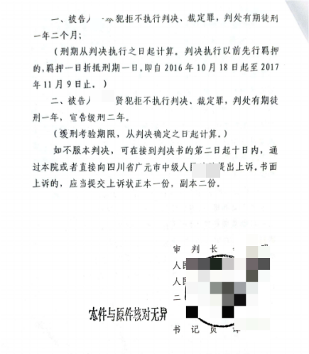 2016年10月18日,广元市利州区法院作出刑事判决,认定二人在2014年1月至2015年9月期间,银行卡有大额资金流水却未履行还款义务,且未向法院报告财产变动情况,通过股权转让等方式转移财产,构成拒不执行判决、裁定罪,判处许某有期徒刑一年两个月,程某贤有期徒刑一年、缓刑两年。