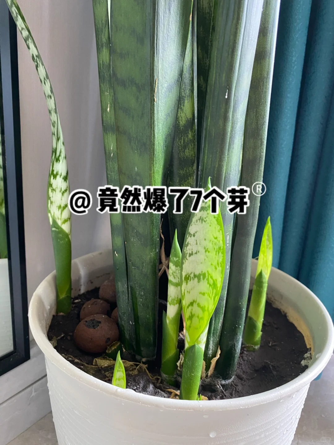 没想到,被女子“随机养1年半”的虎皮兰,如今居然偷偷地长出了7个芽!