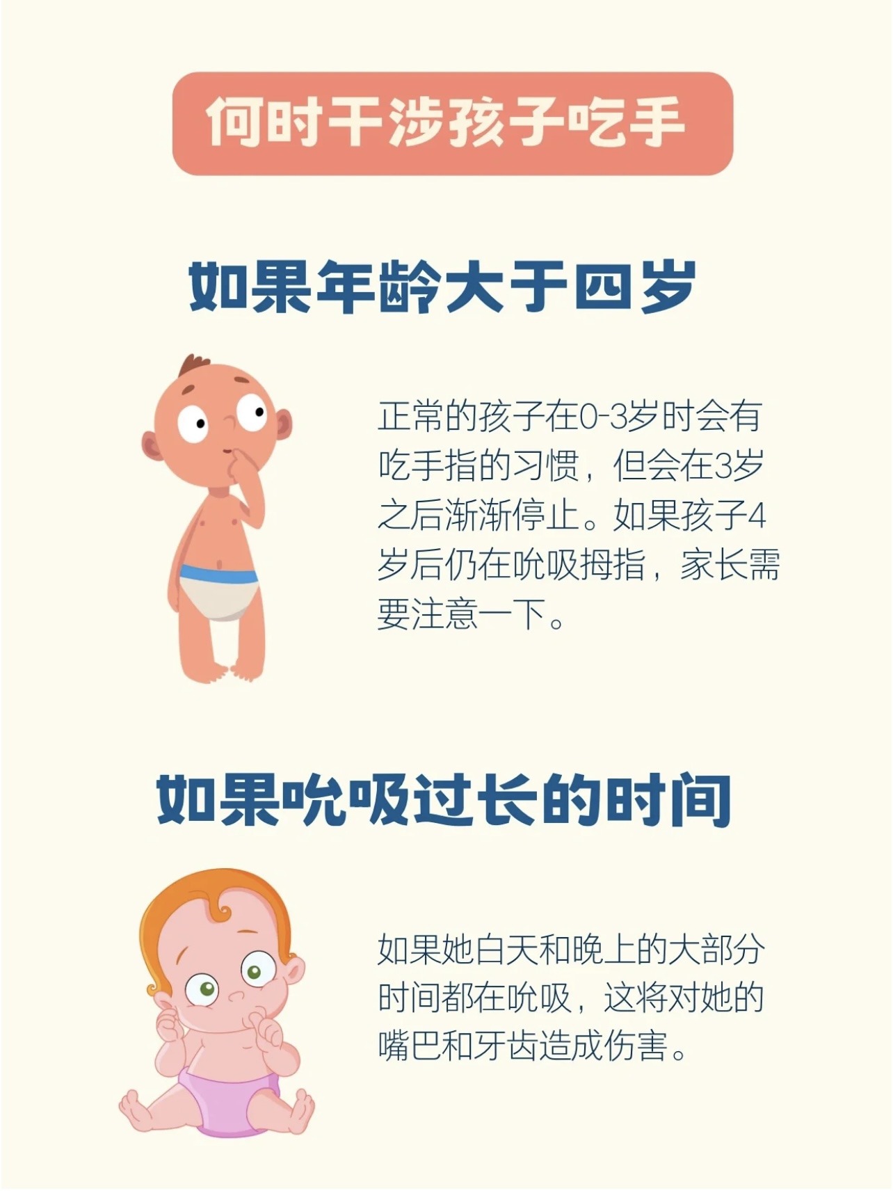 同时满足下面任一“3”,才需要正式干预:1. 牙齿:前门牙开始外飘、开合(咬不断面条)。2. 手指:甲沟炎、甲变形、老茧裂口。3. 社交:被同伴取笑/拒绝一起玩,或自己说“我不想嘬但停不下”。